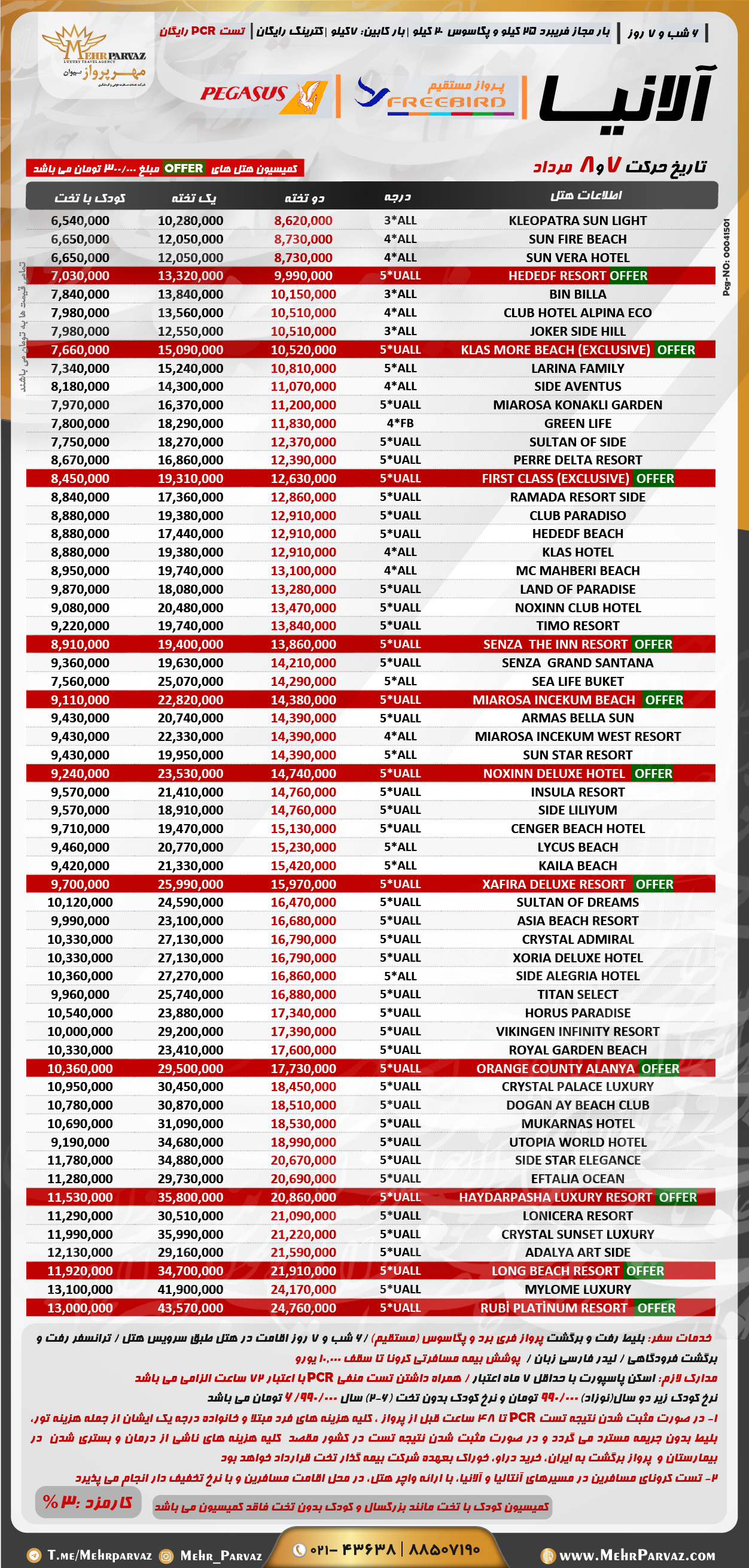تور آلانیا 8 مرداد پرواز پگاسوس