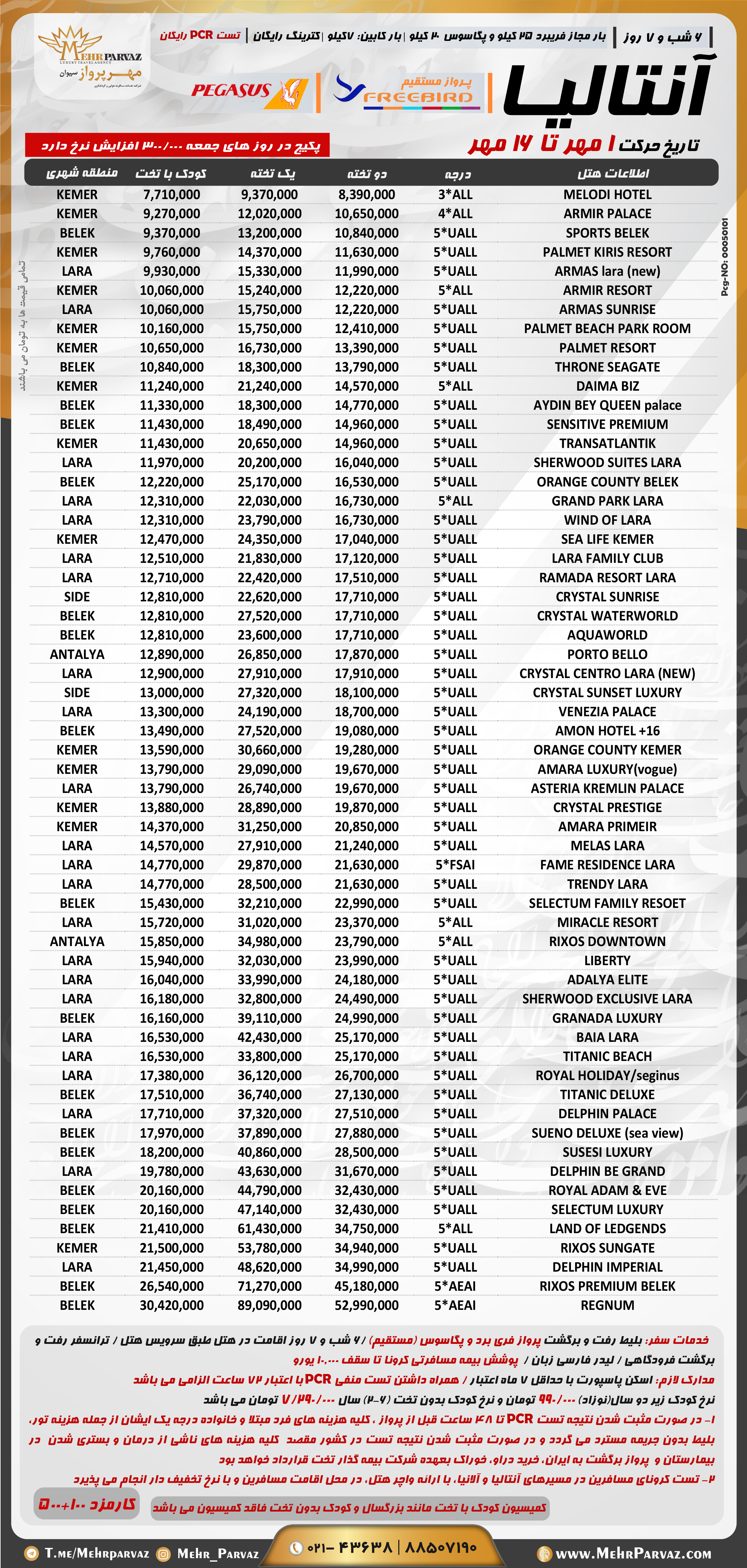 تور آنتالیا(2و9مهر 1400) پرواز فریبرد