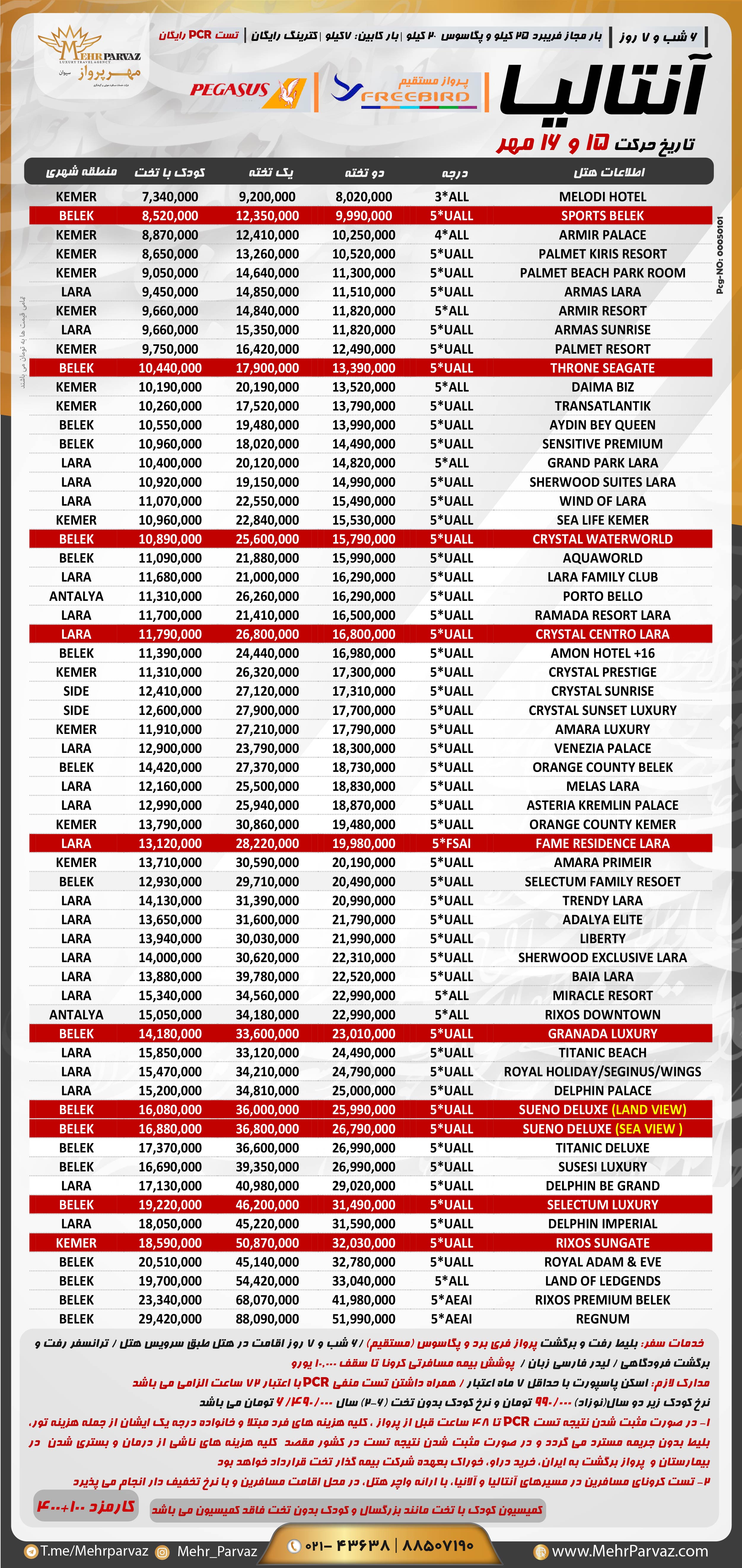 مدارک لازم: اسکن پاسپورت با حداقل 7 ماه اعتبار / همراه داشتن تست منفی PCR با اعتبار 72 ساعت الزامی می باشد