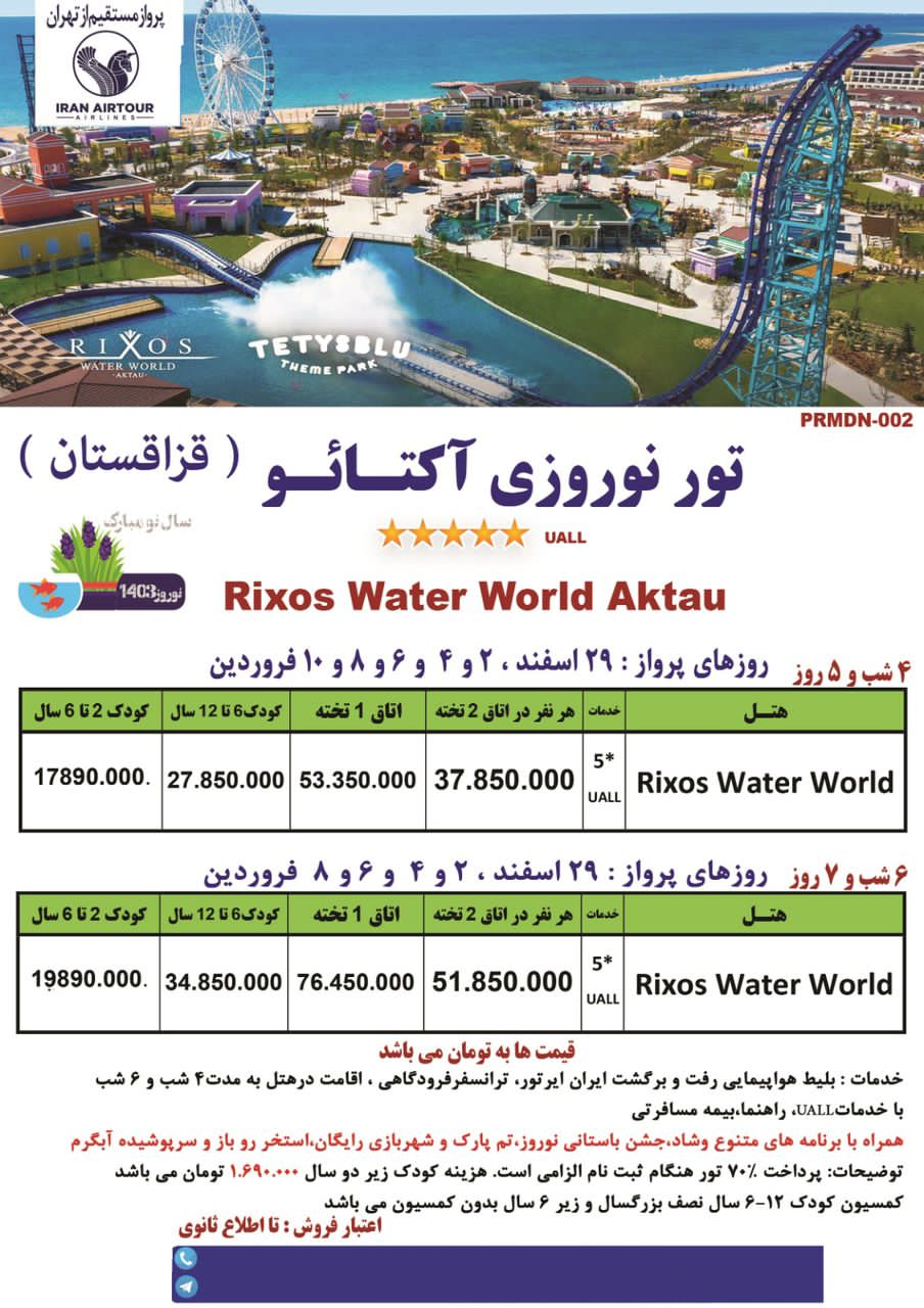 پکیج آکتائو (قزاقستان) 6شب و7روز با پرواز ایران ایرتور